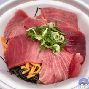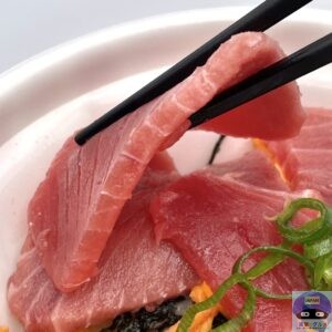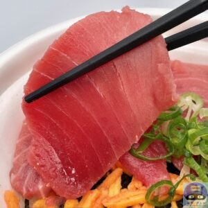 天然の本まぐろの赤身をごはんの上に盛りつけた、年末年始にぴったりの豪華な海鮮丼です。