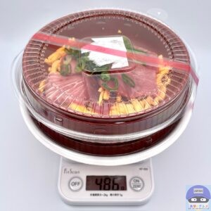 重さをはかると、容器と保冷剤を含めて486gでした。