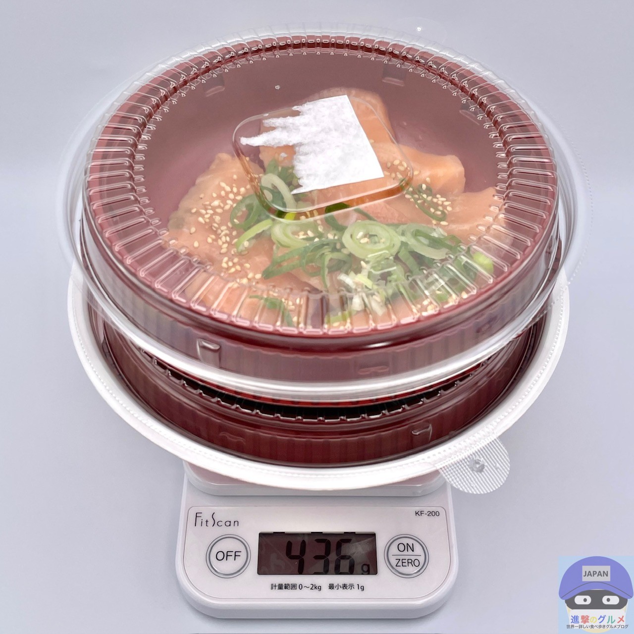 重さをはかると、容器と保冷剤を含めて436gでした。