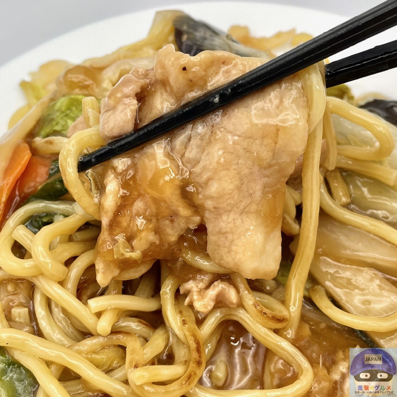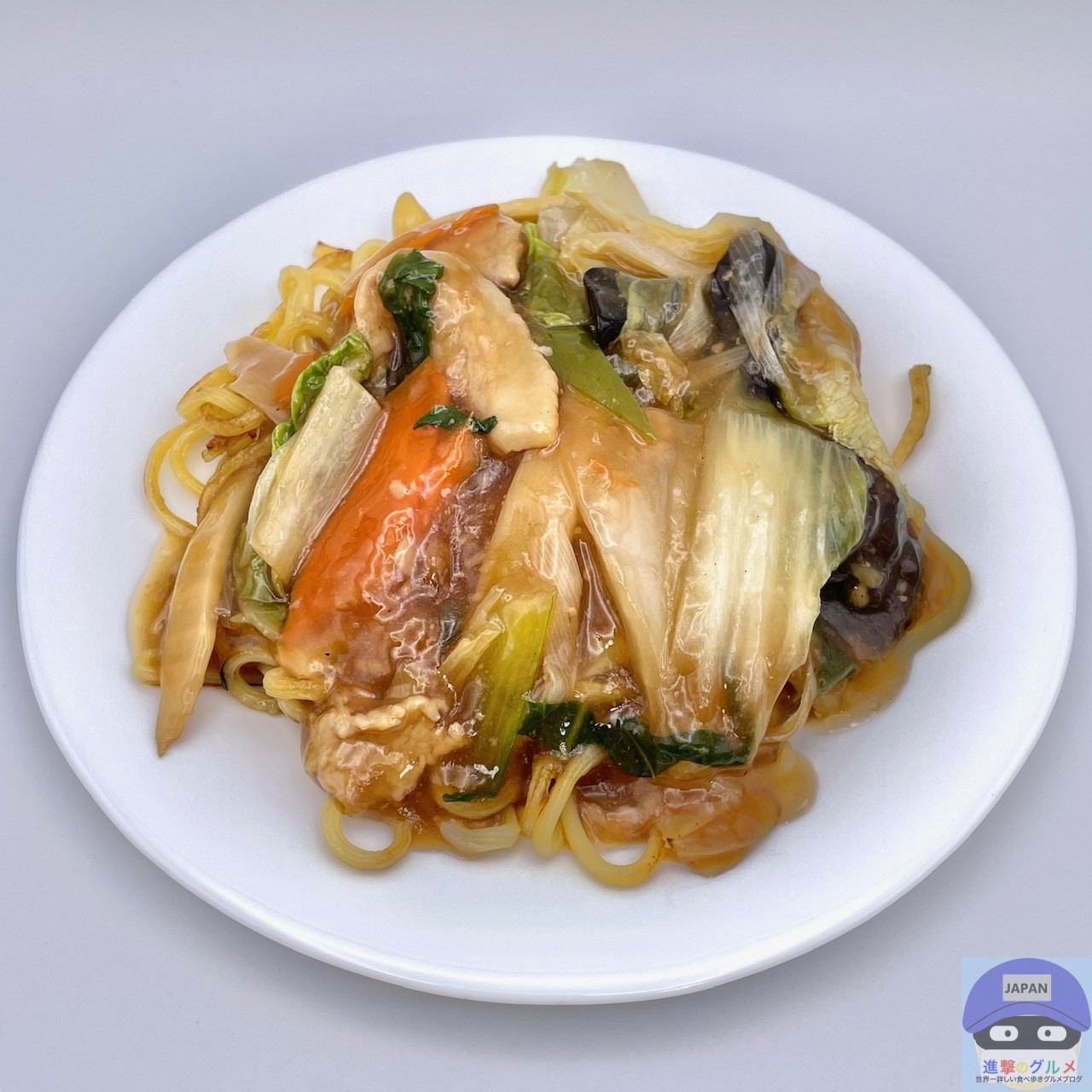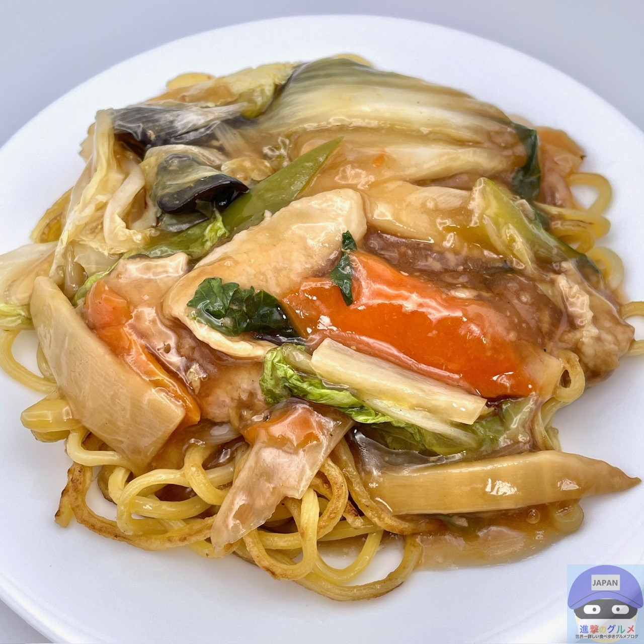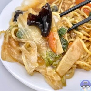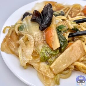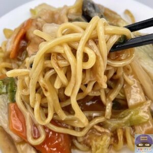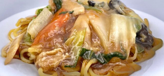 麺が焼かれて少しだけカリッと香ばしく、まろやかなコクと甘みのある餡がよく絡みます。