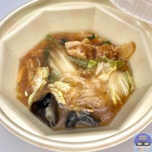 具材は、豚肉・白菜・にんじん・ピーマン・たけのこ・ねぎ・チンゲン菜・きくらげなどが入っています。