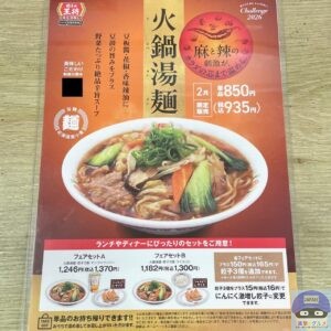【餃子の王将】火鍋湯麺(ヒナべタンメン)【2026年2月の月替わりメニュー】