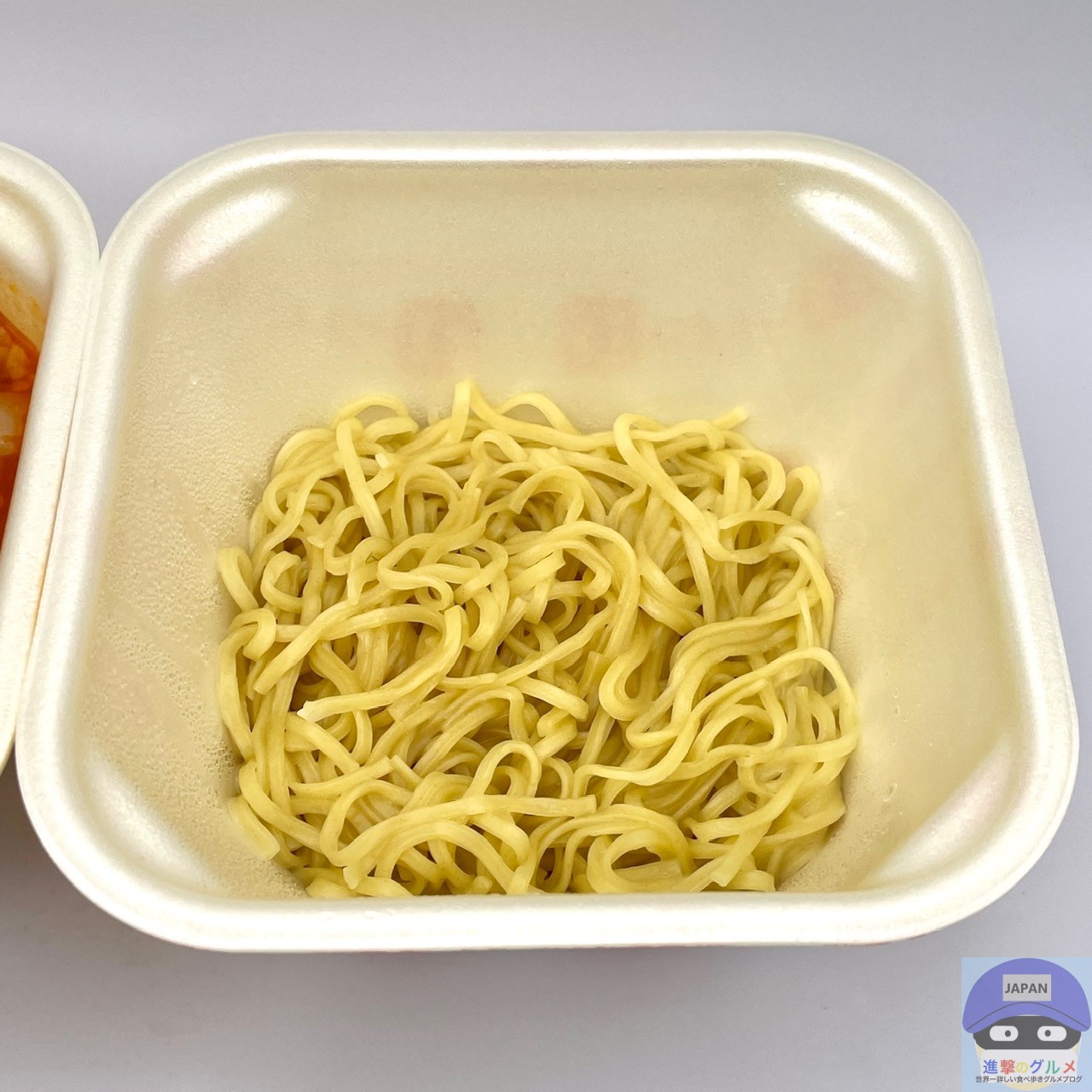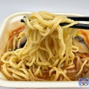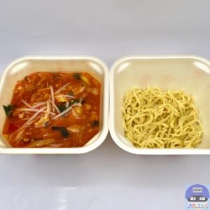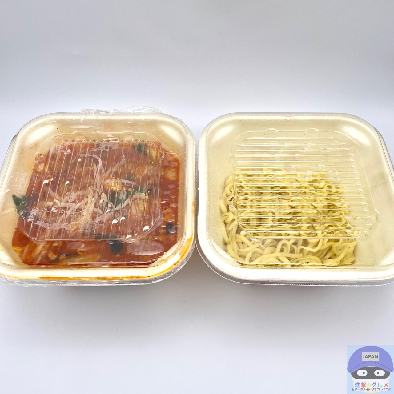 開封すると、北海道産小麦粉を使用した麺、具材入りスープが分かれています。
