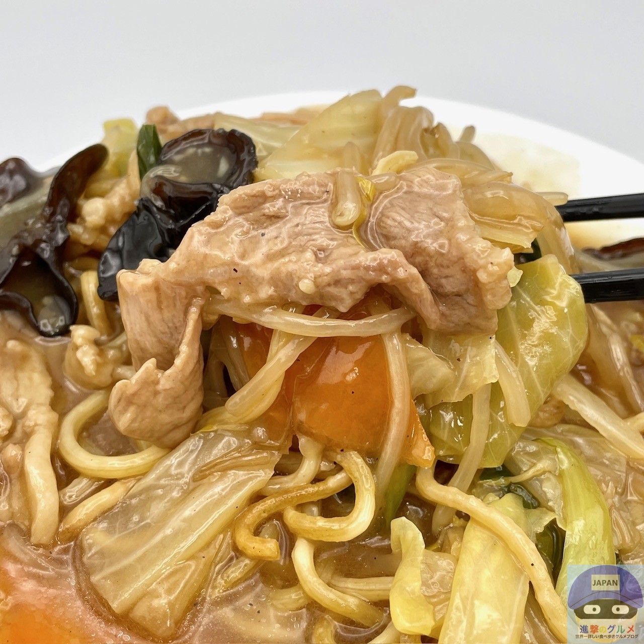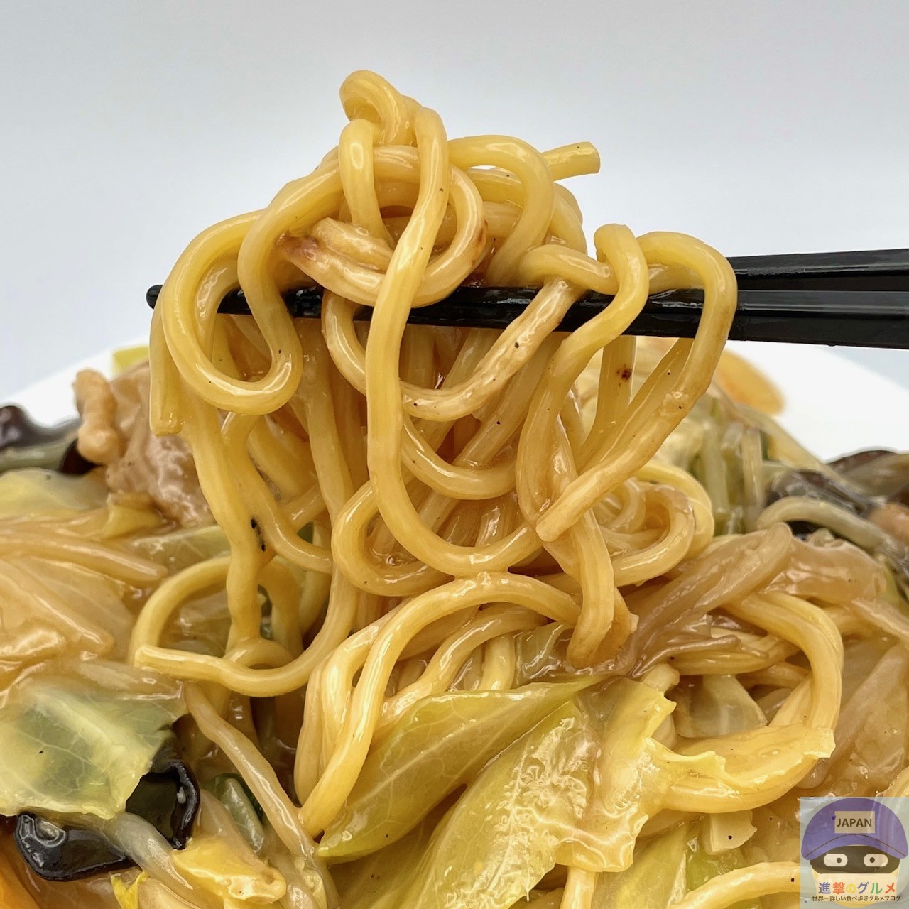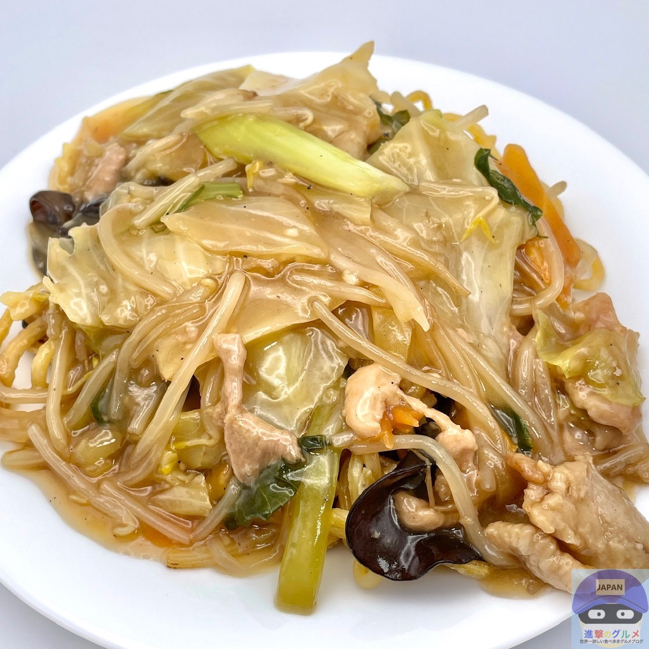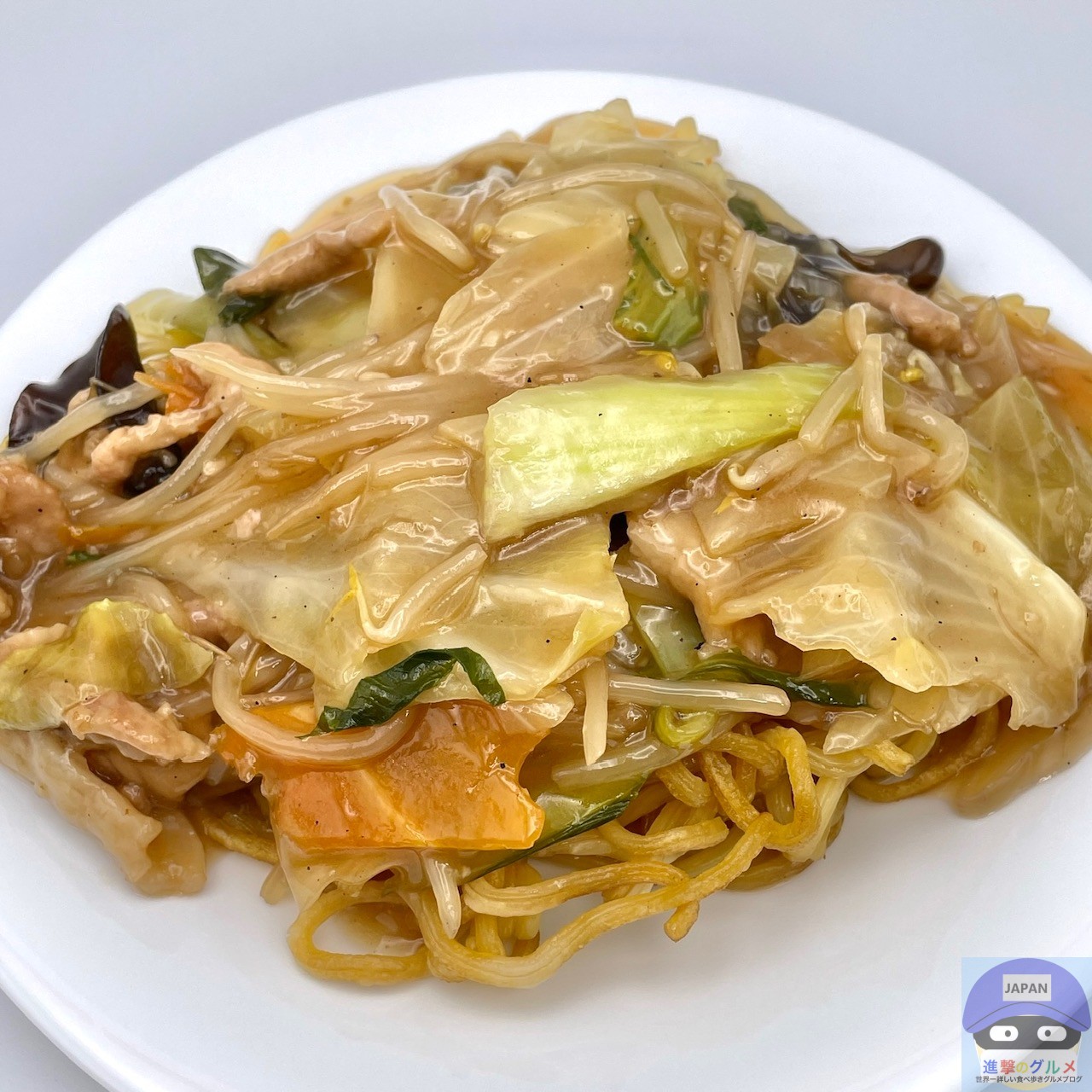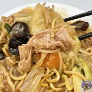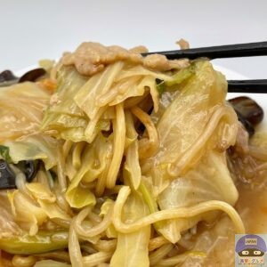 麺が焼かれて少しだけカリッと香ばしく、まろやかな旨味と甘みのある、やさしい味わいの餡が絡みます。