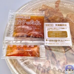 レンチンシリーズ、電子レンジで加熱できる容器に入って、餃子のたれとラー油が付いています。