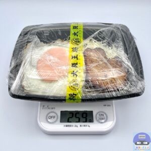 重さをはかると、容器を含めて259gでした。