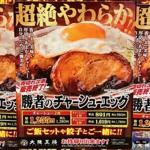 2025年12月22日より、「大阪王将」が新メニュー「勝者のチャーシューエッグ」を数量限定で販売開始しました。