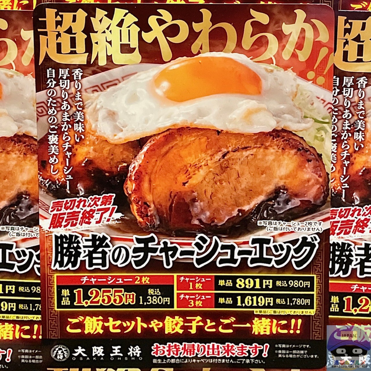 【大阪王将】勝者のチャーシューエッグ・チャーシュー2枚【新メニュー】