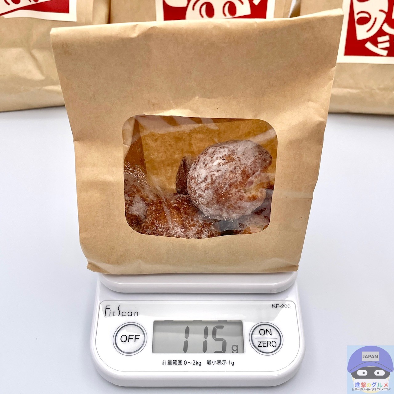 重さをはかると、紙袋を含めて1袋112g~116gでした。