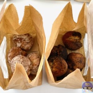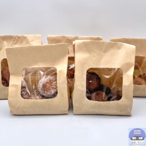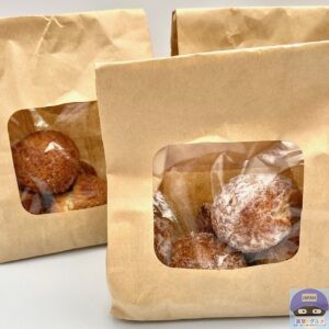 紙袋に5粒のひとくちドーナツが入って、価格は、どれも300円です。