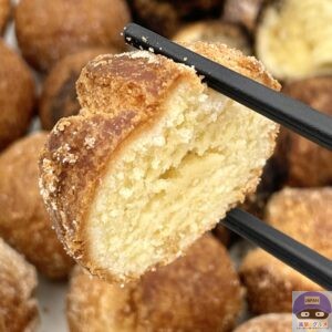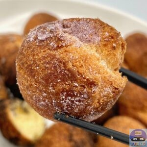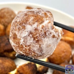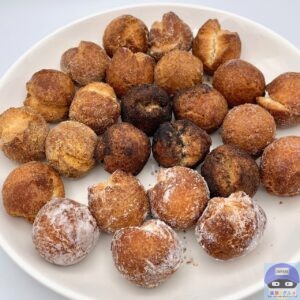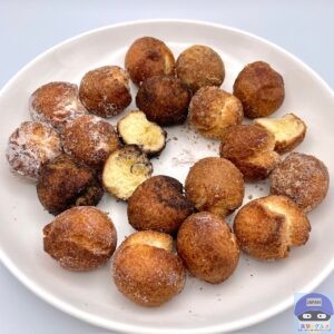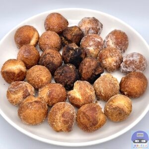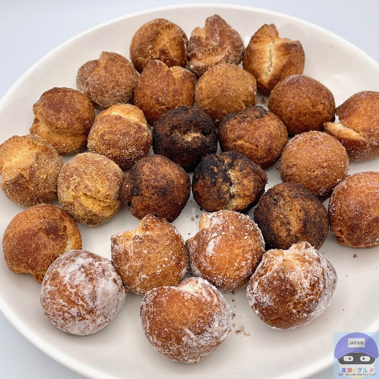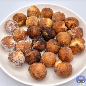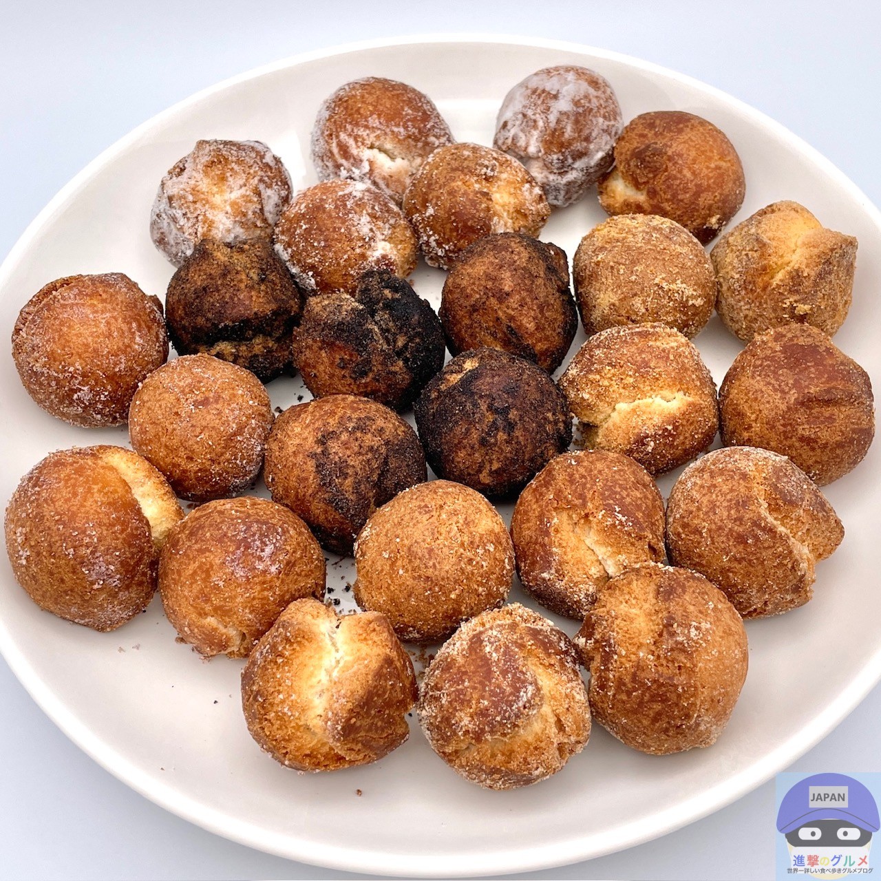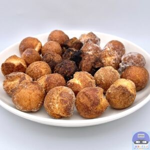 5種類のフレーバーのひとくちドーナツ合計25粒(餃子味、麻婆豆腐味、シュガー味、いちごミルク味、チョコレート味)が盛られてボリューム満点です。