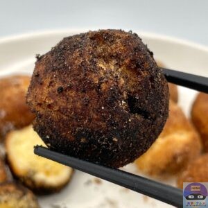 ほんのりやさしい甘さに、餃子味パウダーのにんにくの効いた餃子風の旨みをしっかり感じます。