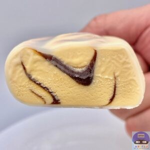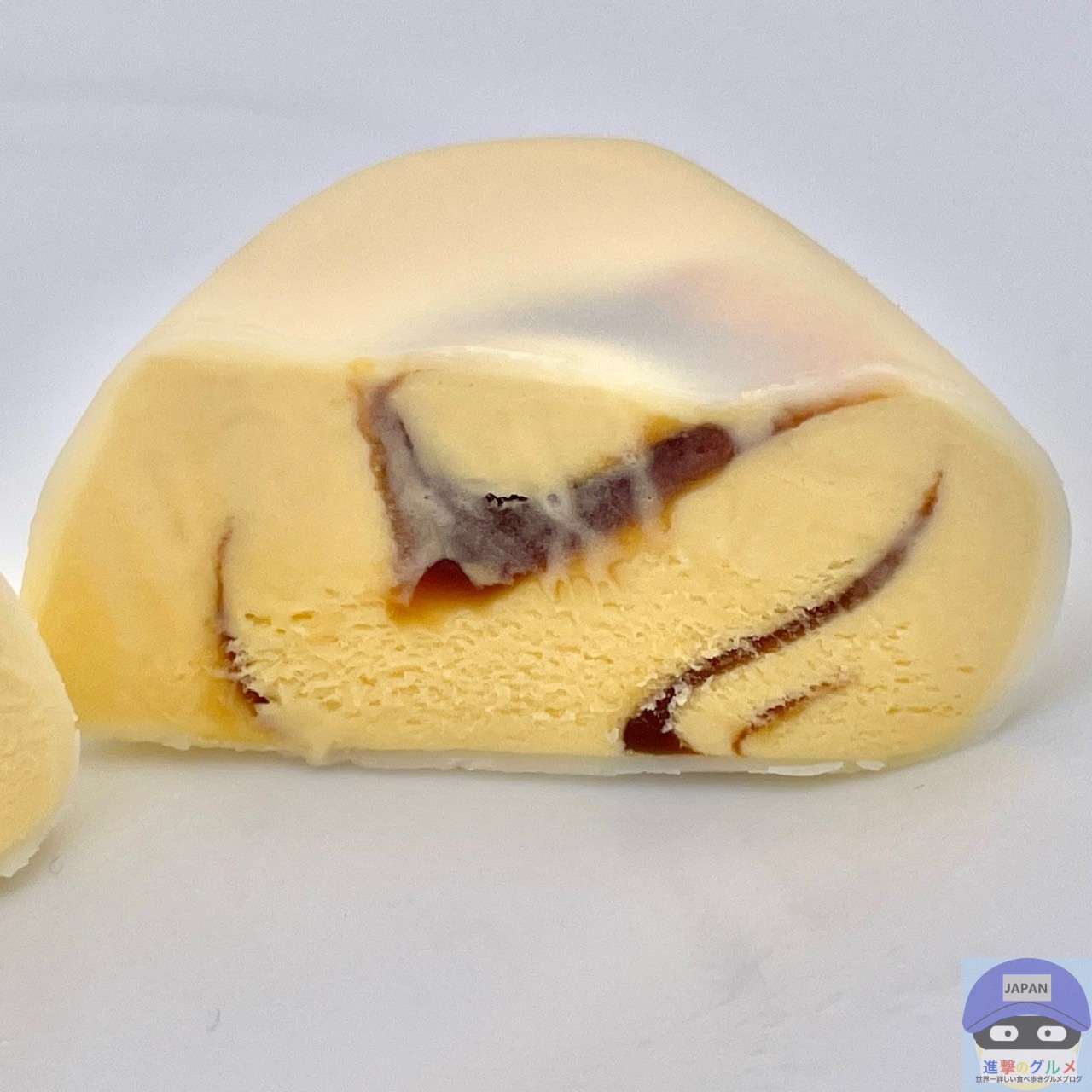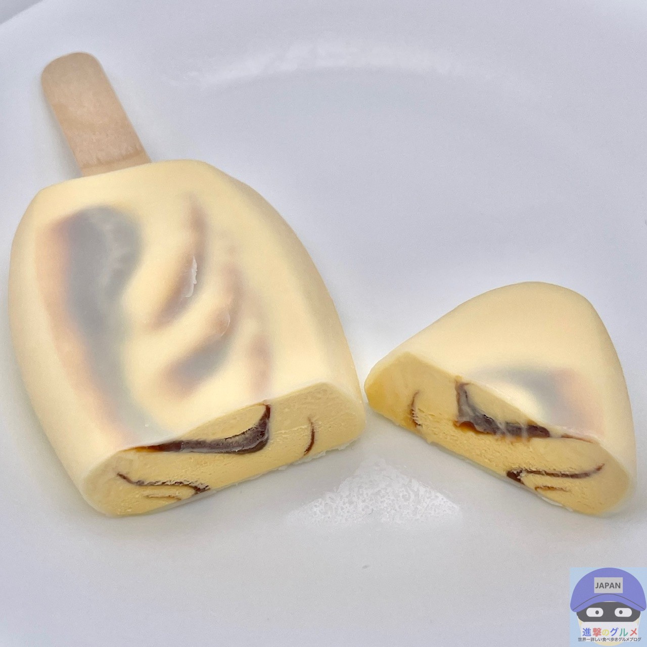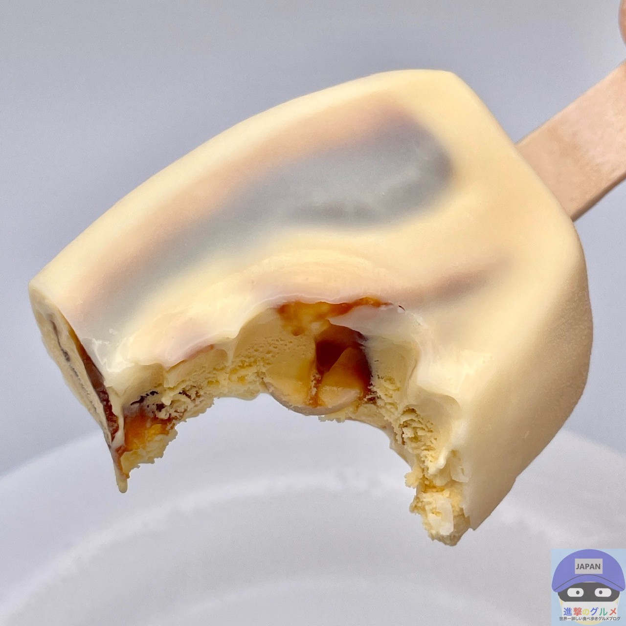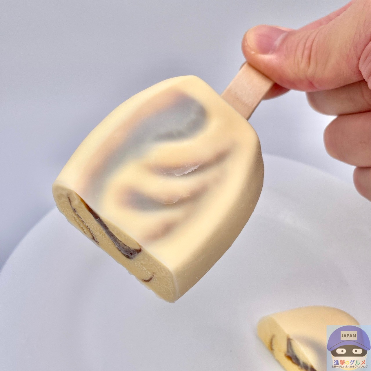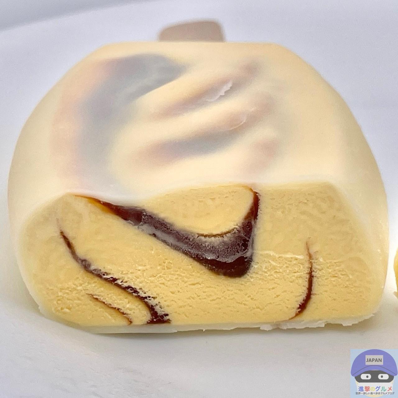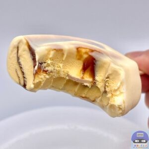 カスタードアイスがとろけ、卵感とコクでカスタードプリンのような味わい、後味はホワイトチョコが口の中に残り、しっかり甘いです。