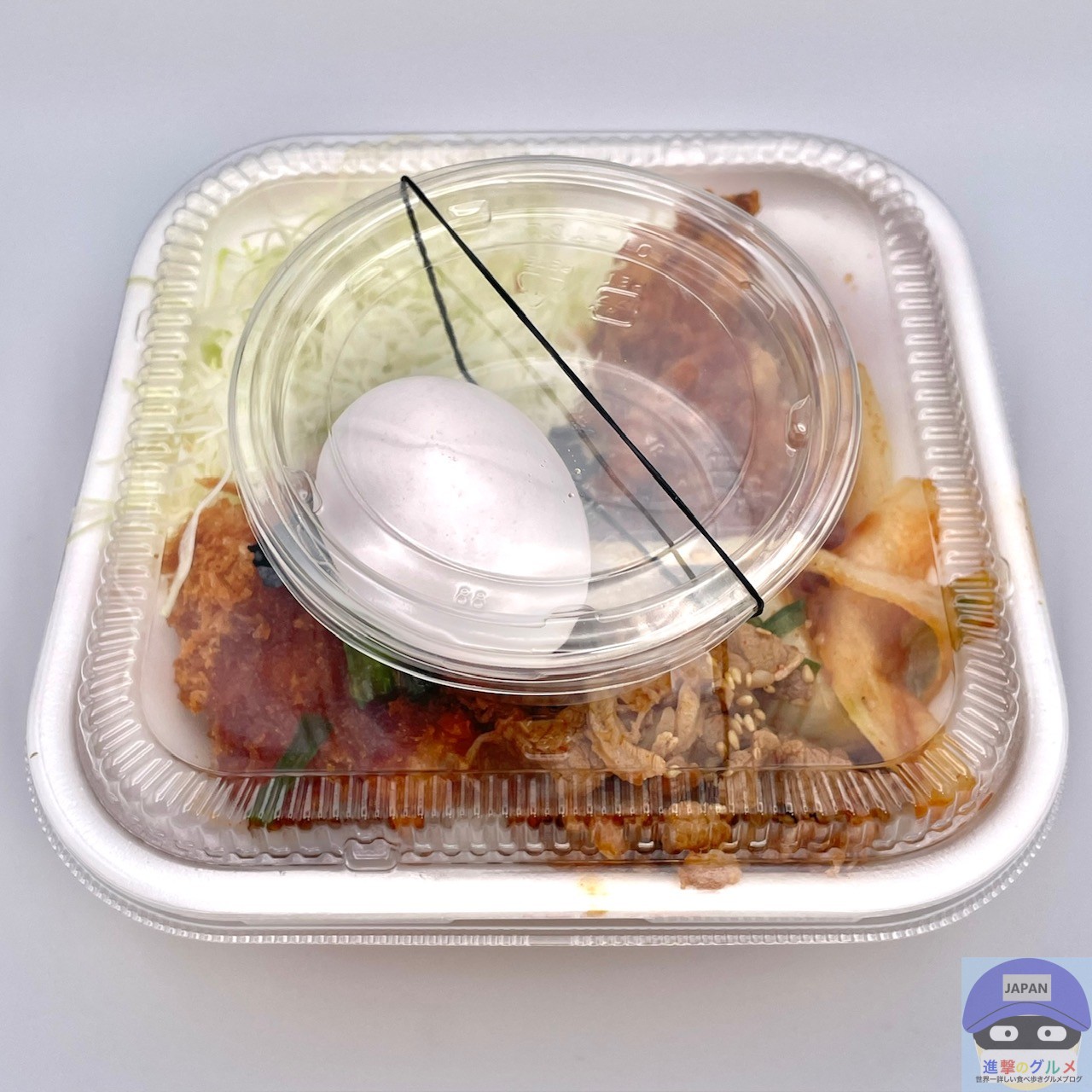 「牛豚鶏のプルコギビビンカツ丼弁当・温玉あり(961円)」