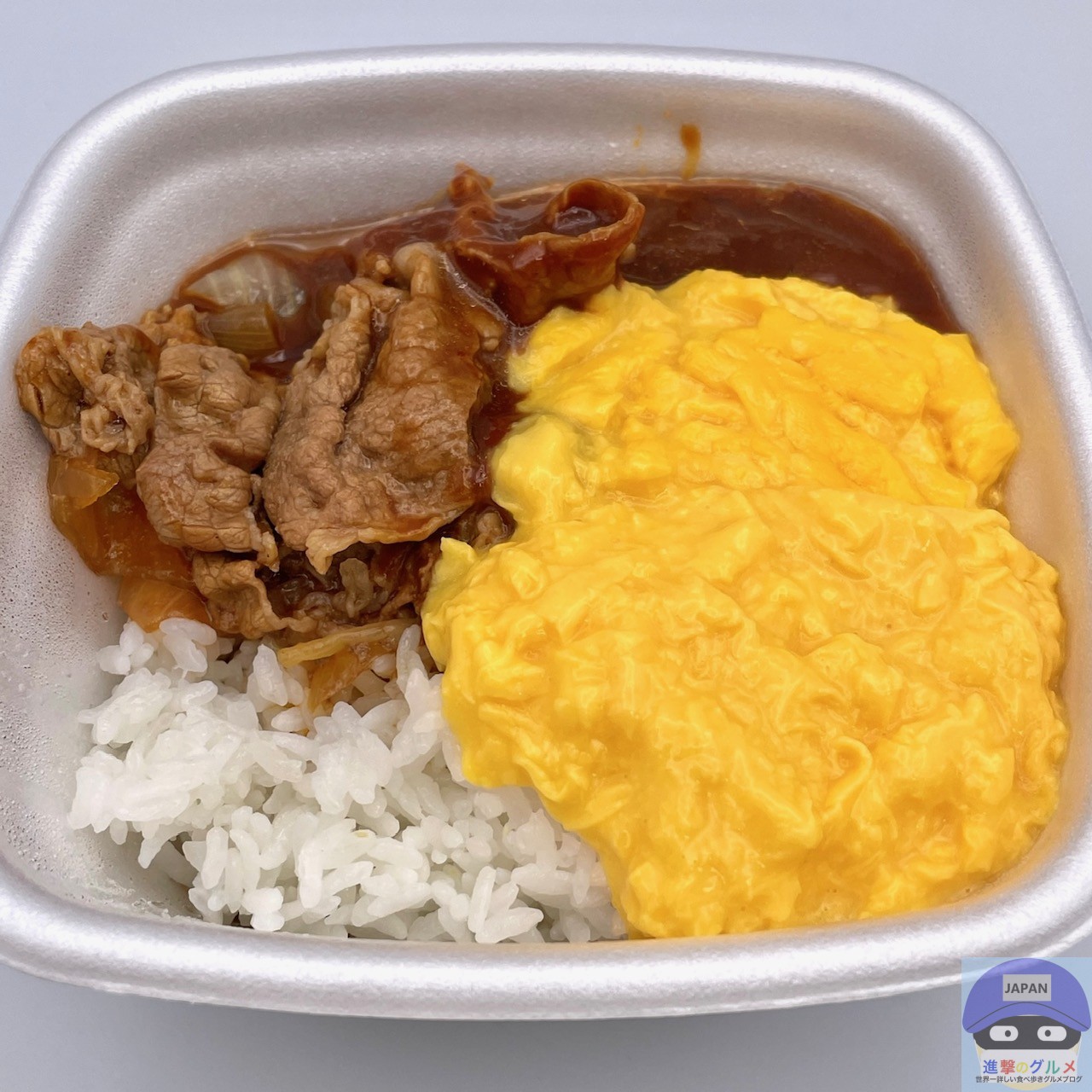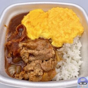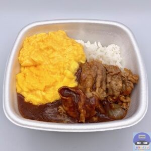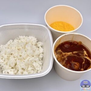 牛肉・玉ねぎ・フレッシュミルク入りの特製ハヤシソース、ふわとろのオム玉子、ライスの組み合わせです。