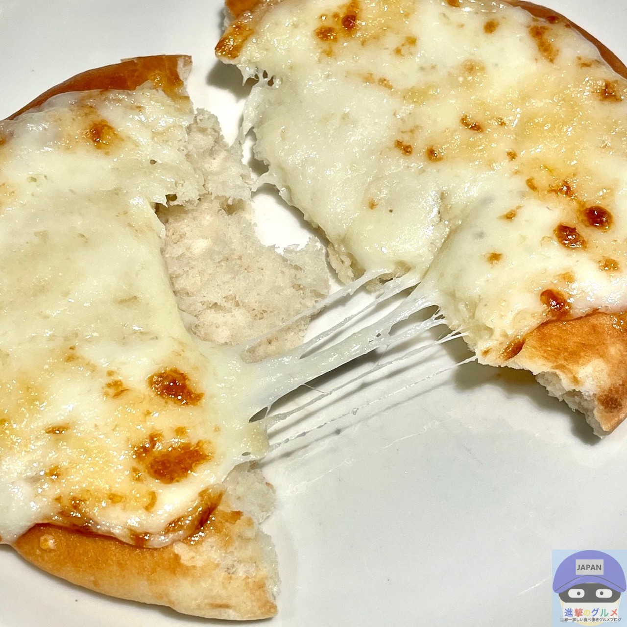 手で半分にすると、チーズが伸びます。