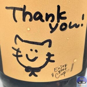 お店の人がラベルシールにネコちゃんのイラストを描いていました。