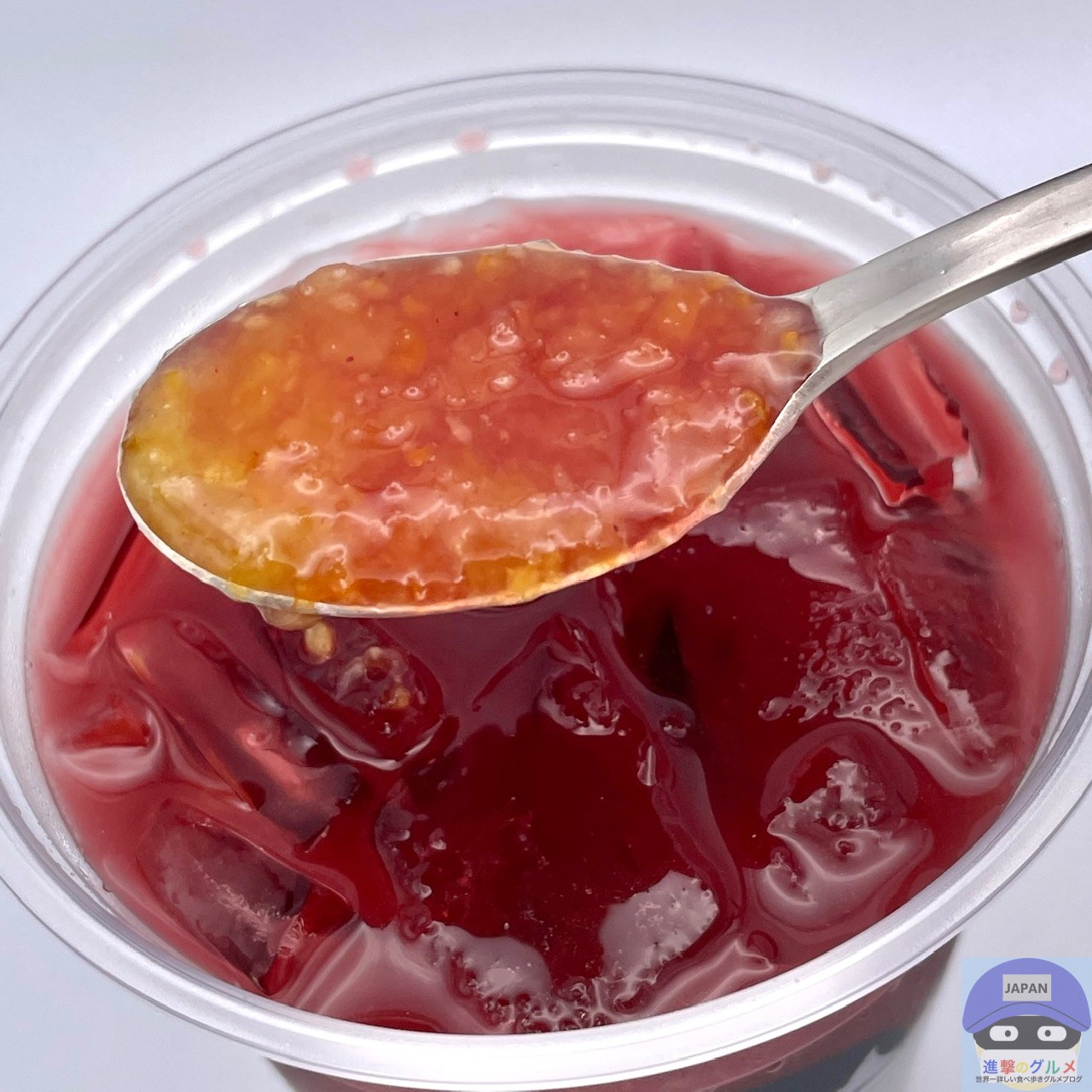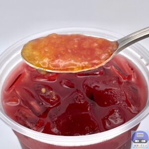 カップの底に沈んだたっぷりのゆず果皮の食感・香り・ほろ苦さ、シロップの甘みが印象的、シトラスの酸味と爽やかさを少し感じます。