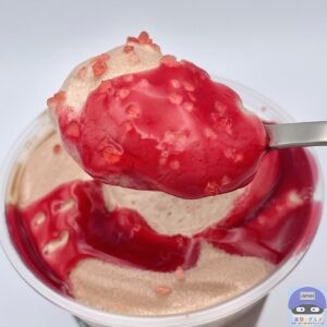 やや濃いめで深みのあるチョコレートのコクと香りの良さに、つぶつぶ感のあるストロベリー果肉の甘酸っぱさが合わさり、贅沢な味わいです。