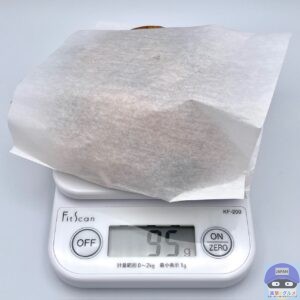 重さをはかると、包装紙を含めて95gでした。