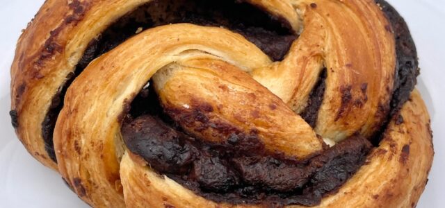 サクサクのデニッシュ生地にチョコレートフィリングを挟み、どこを食べてもチョコレートのリッチで濃厚な味わいを楽しめるよう、渦巻き状に仕上げました。