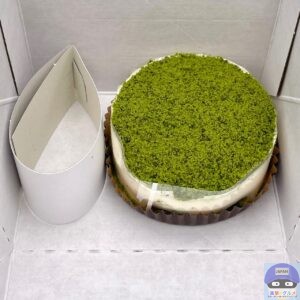 かためで広げることができないケーキシートと抹茶ティラミスの底がくっつき、やわらかいクリームの形が崩れてしまうため、直接お皿に置くのをやめました。