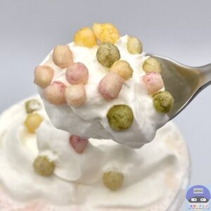 ふんわり軽やか、すっと溶けてさっぱり、おいり風3色あられのサクサク食感が良いです。