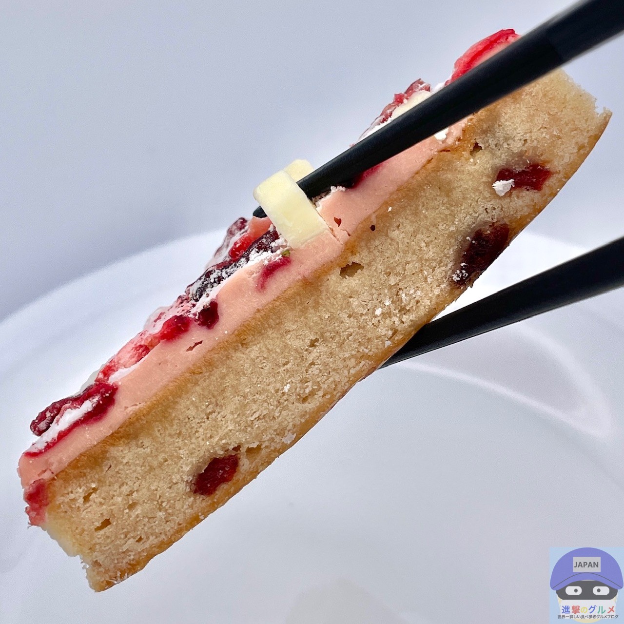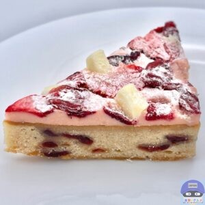 しっとり少し濃密な歯触りの生地で、シャキッとしたストロベリーやクランベリーの甘酸っぱさ、ストロベリークリームチーズフィリングのまろやかさがクセになります。