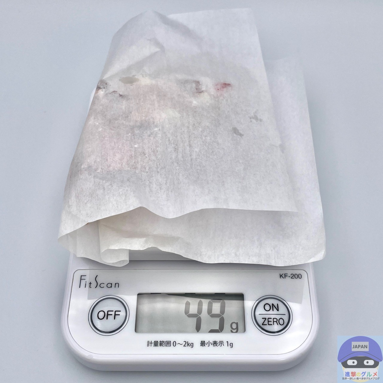 重さをはかると、包装紙を含めて49gでした。