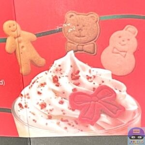 ホリデーらしいデザインの4種類(リボン、スノーマン、くま、人形)の中からランダムにトッピングすることができ、どれが出るかはお楽しみです。