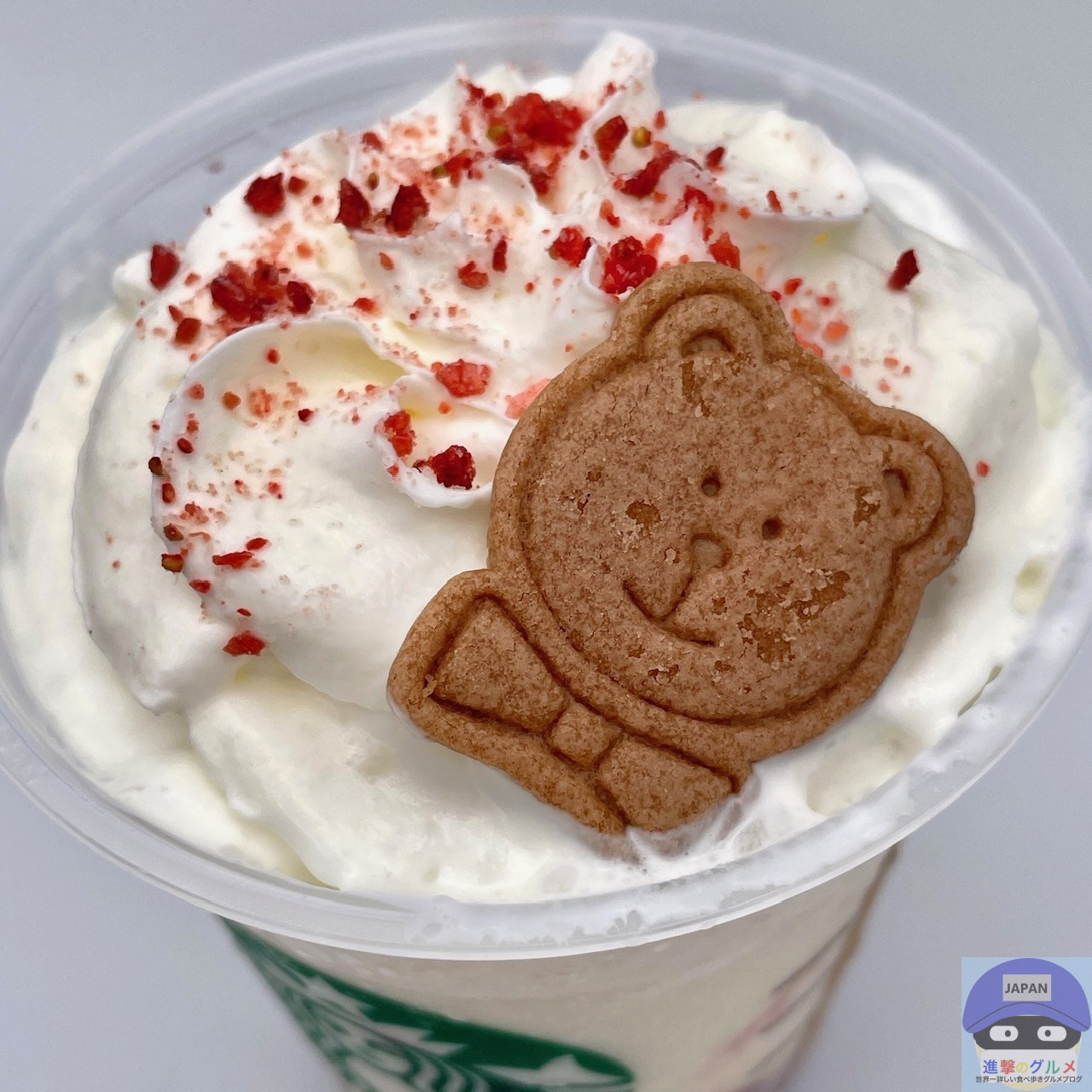 「ストロベリー&ジョイフルメドレーティーフラペチーノ(700円)」の「ジョイフルクッキー トッピング(55円)」