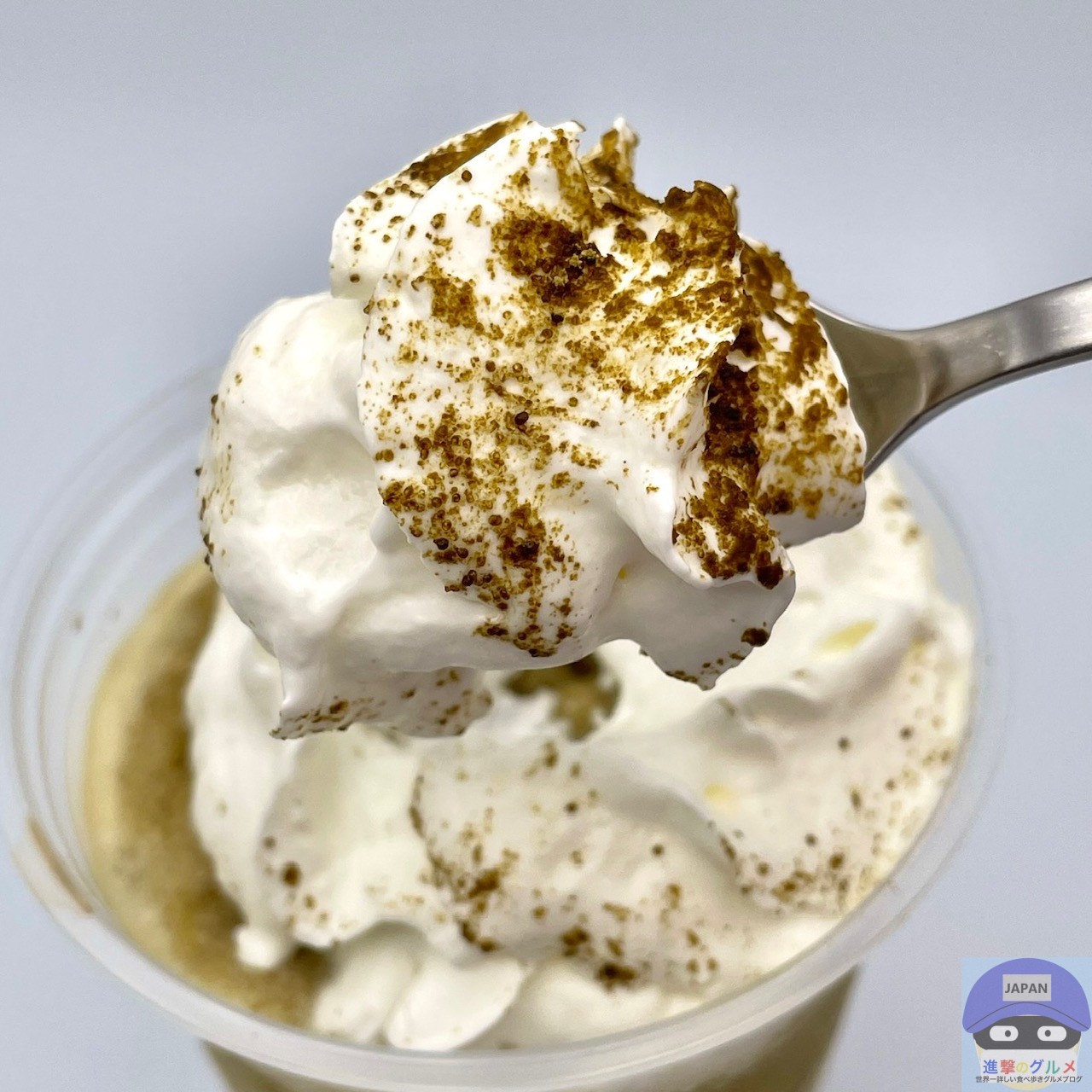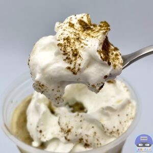 氷のシャリシャリ食感、ホイップクリームのクリーミーさが加わり、甘さ控えめのほうじ茶ミルクの味わいがクセになります。