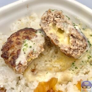 中にモッツァレラチーズとレッドチェダーチーズを使ったソースを入れたハンバーグを、すき家の「カレー」にのせた食べごたえのある一品です 。