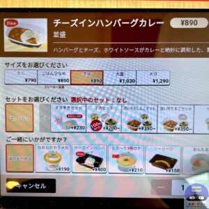 今回は、「チーズインハンバーグカレー・並盛(890円)」にしました。