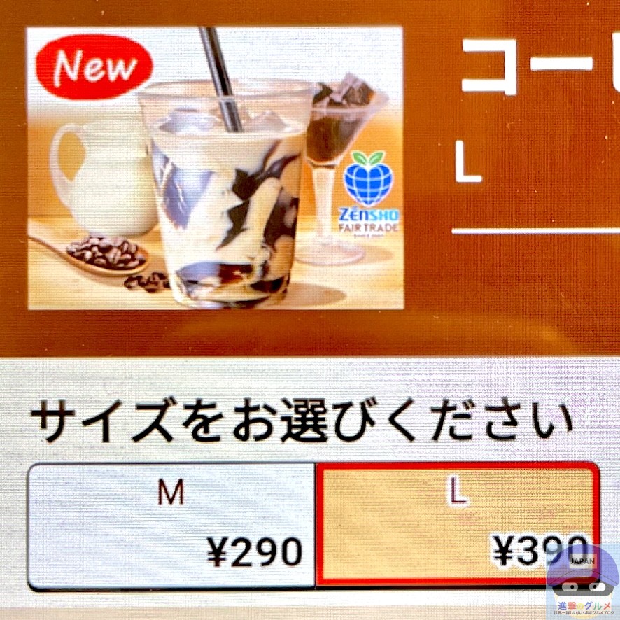 今回は、「コーヒーゼリークリームラテ・Lサイズ(390円)」にしました。
