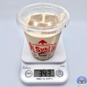 重さをはかると、容器を含めて343gでした。