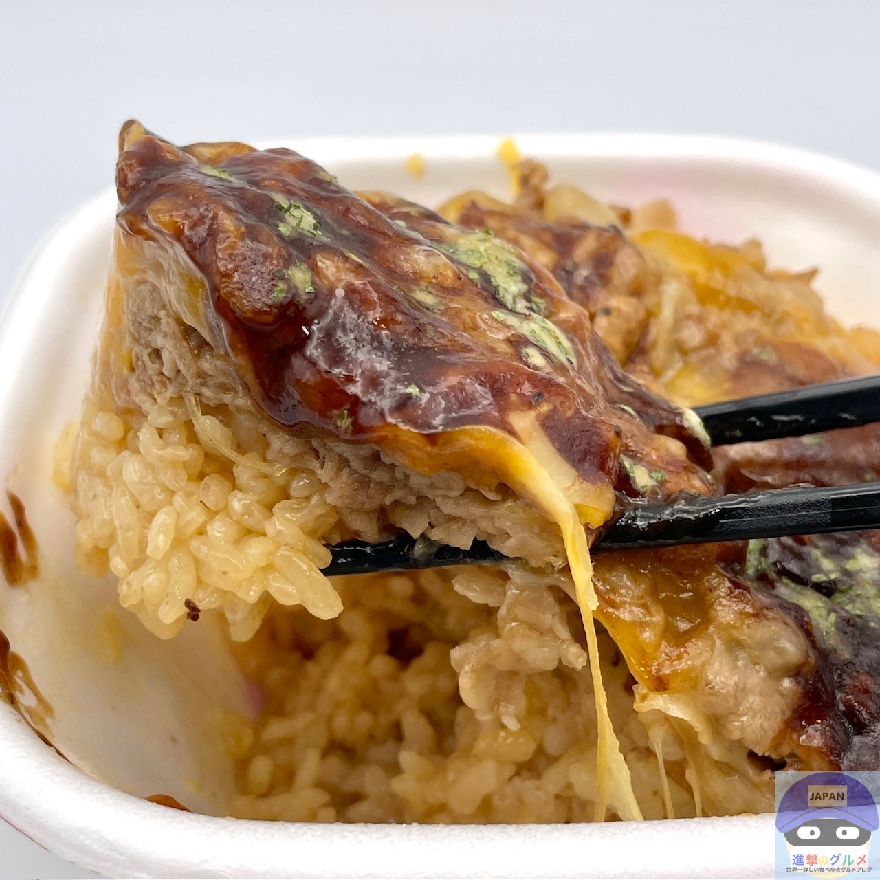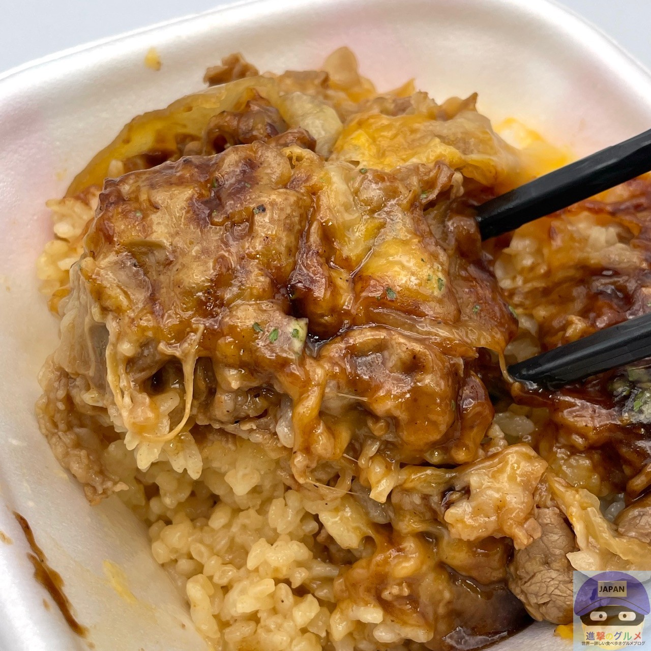 甘辛いタレのしみた柔らかい牛肉の馴染みの味わい、しんなりシャキッとした玉ねぎの甘みとチーズが合います。
