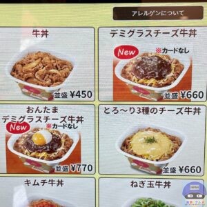 メニューは、「デミグラスチーズ牛丼・並盛(660円)」、「おんたまデミグラスチーズ牛丼・並盛(770円)」があります。
