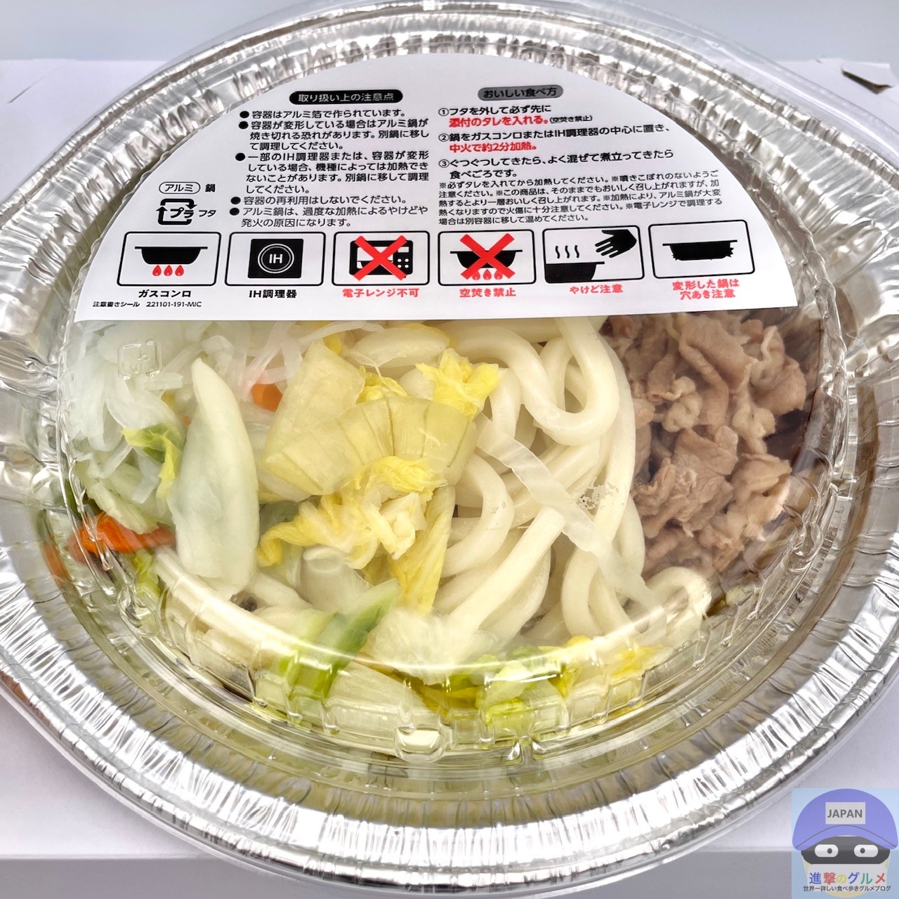 具材は、牛肉、白菜、にんじん、ねぎ、白滝、うどんが入っています。