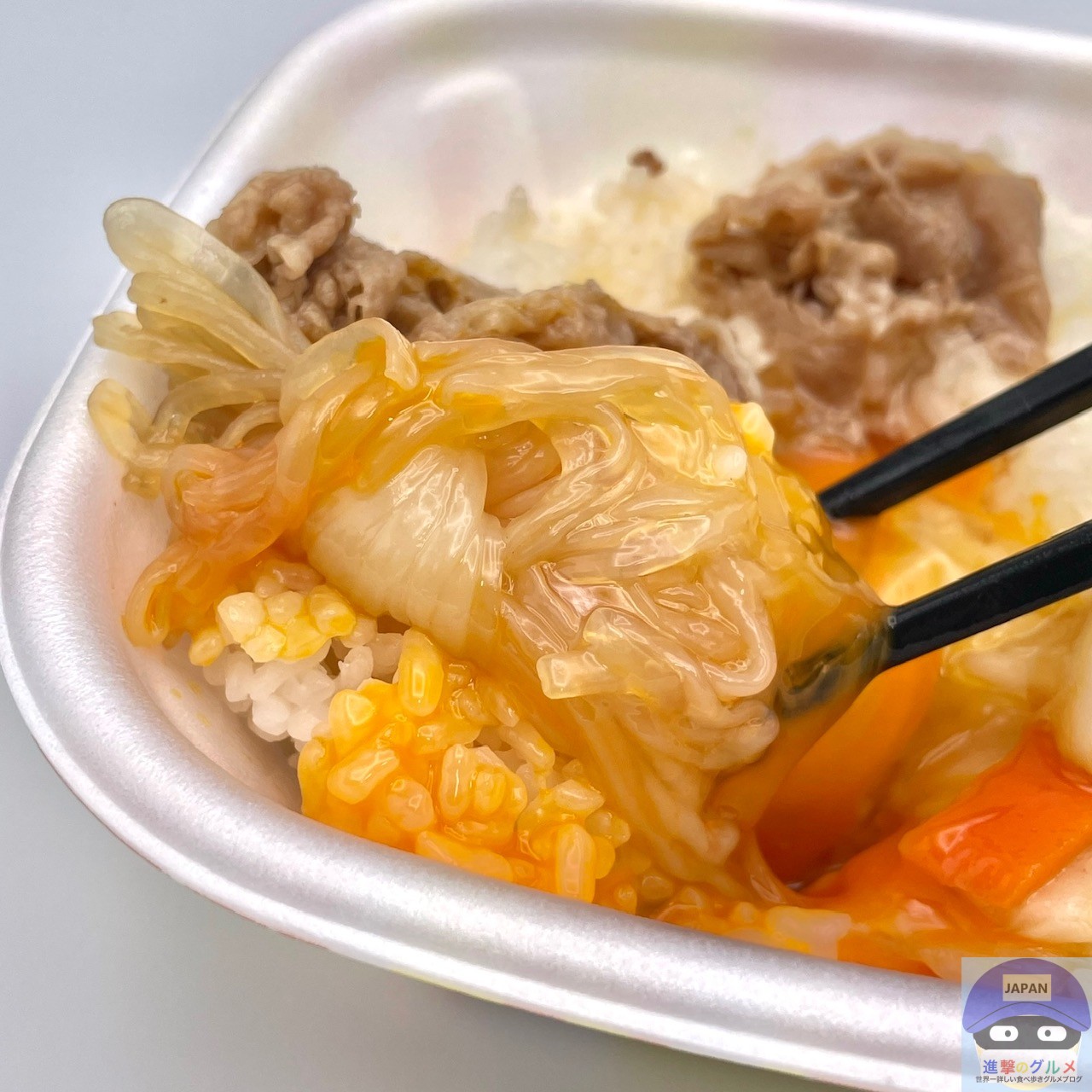 「麻辣湯(マーラータン)」らしく、たっぷりの具材に、もちもちとした食感のじゃがいも春雨を使用し、別添えの麻辣オイルを加えると、食欲をそそる豊かな香りが広がってごはんがすすみます。