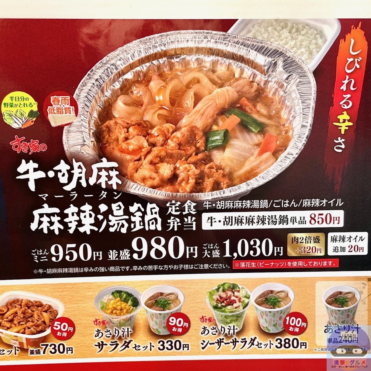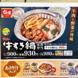 2025年10月28日より、「すき家」が期間限定メニュー「牛すき鍋定食」「牛・胡麻麻辣湯鍋定食」を販売開始しました。