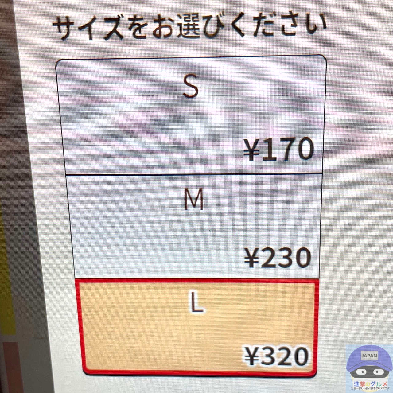 今回は、「いちごシェイク・Lサイズ(320円)」にしました。