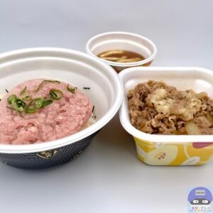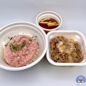 【すき家】まぐろWセット(まぐろたたき丼・並盛、牛丼・ミニ、みそ汁)【夜すき・定番メニュー】