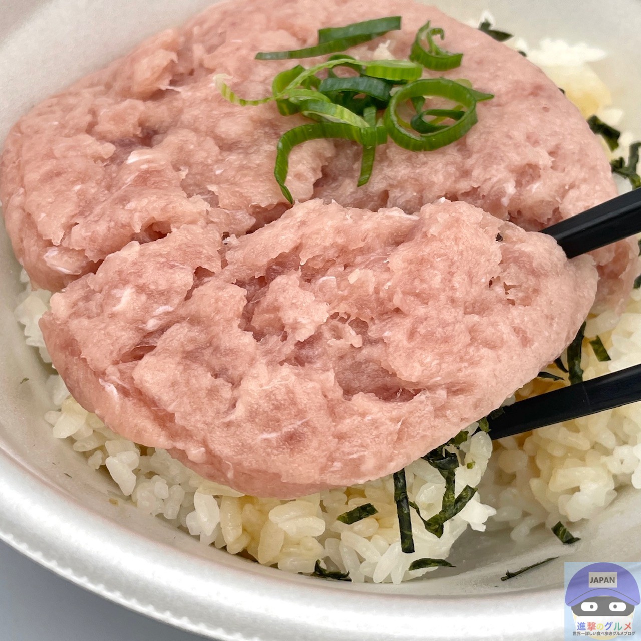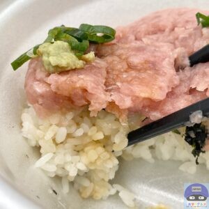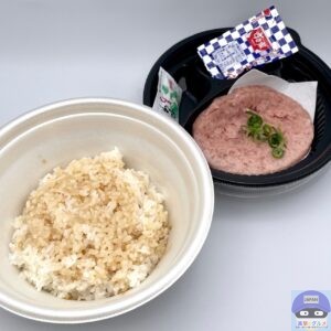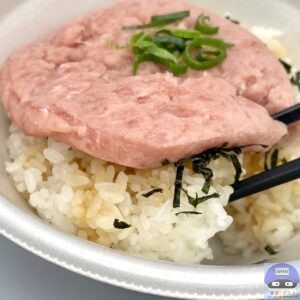 まぐろたたき・青ねぎ・きざみ海苔・特製だれ・ごはんで作られています。