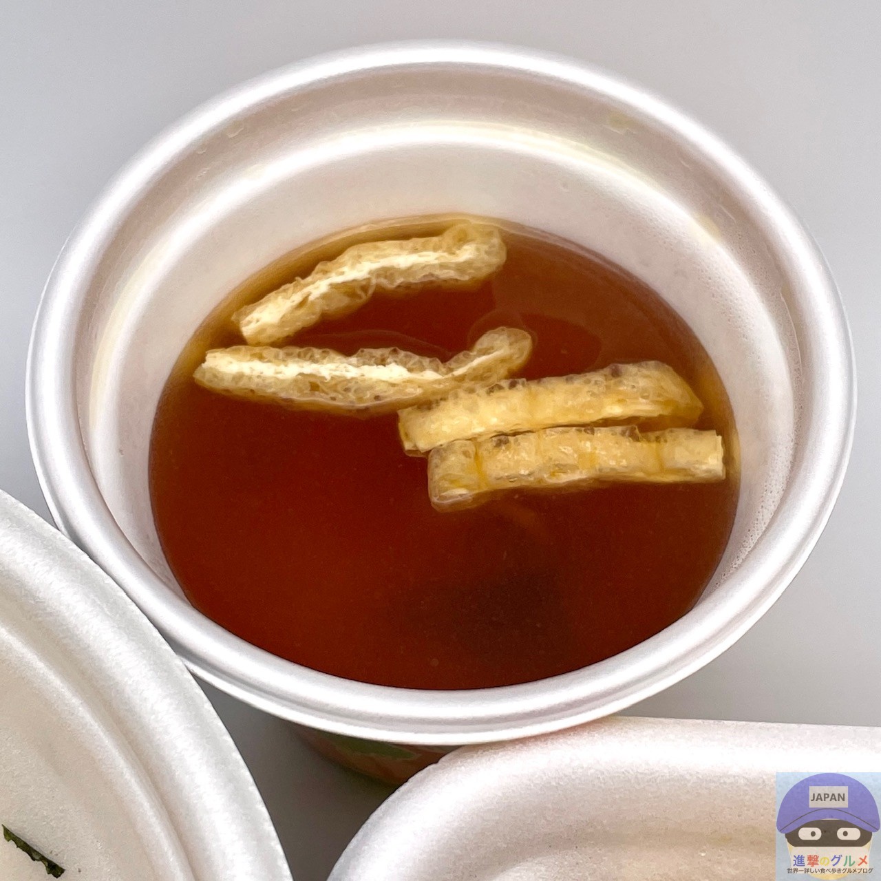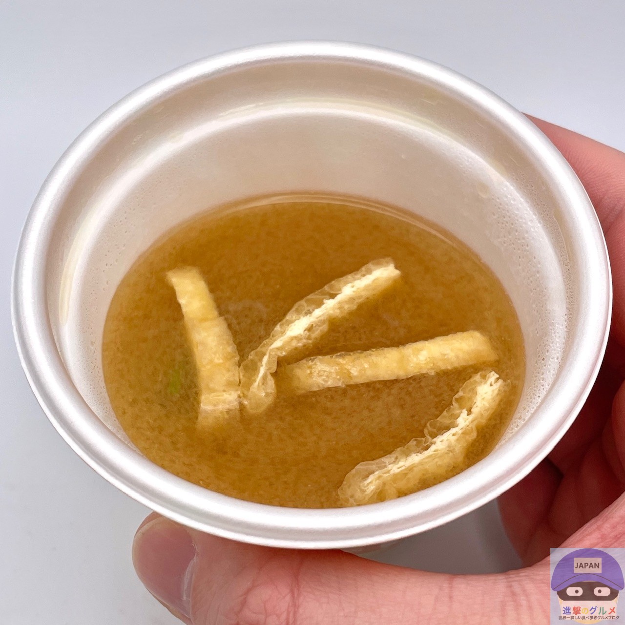 みそ汁は、油揚げとわかめが入った安定の味わいです。