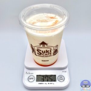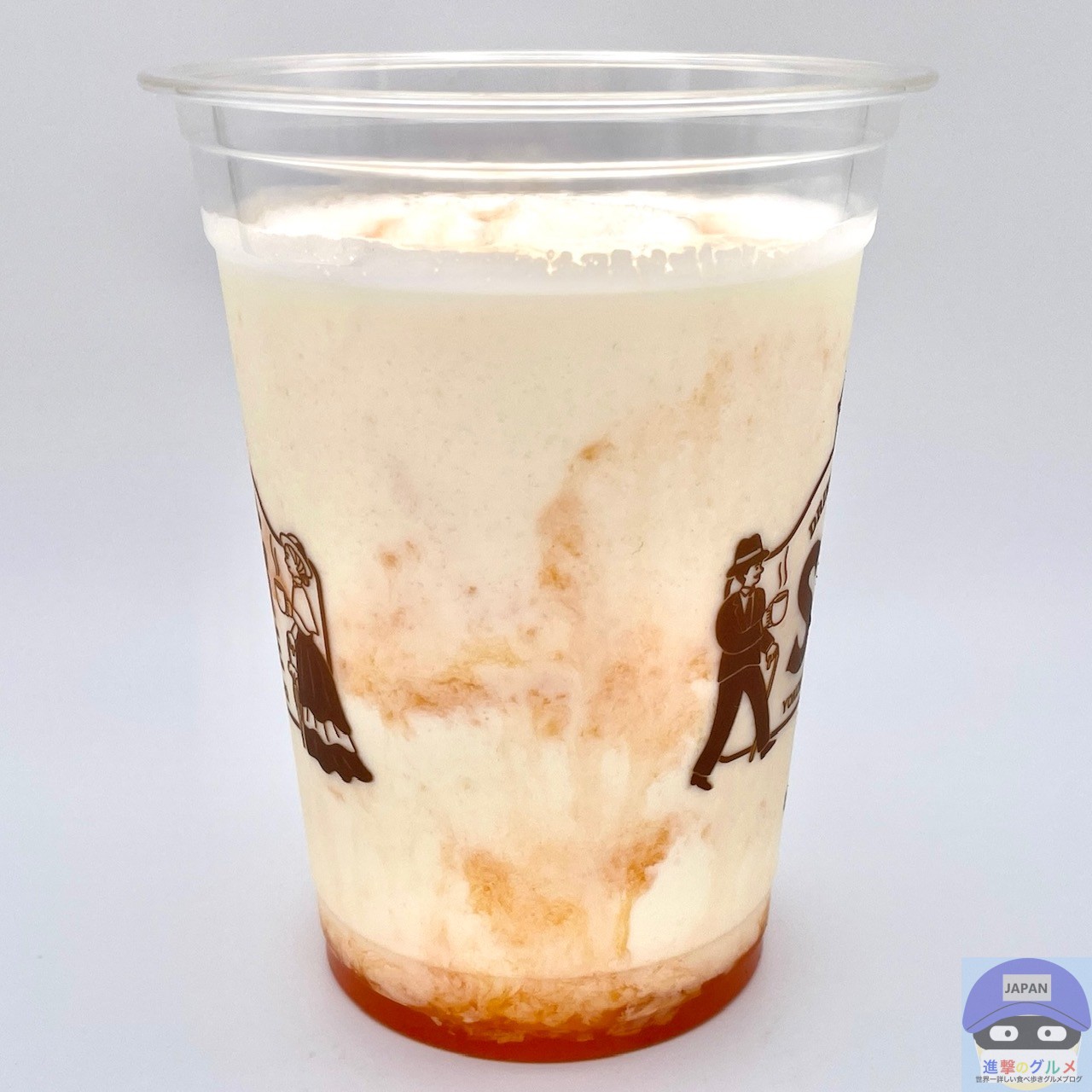 カップの底にたまった北海道産赤肉メロンソースの香りと甘みがしっかり広がる本格派、飲みごたえがあって後味すっきりします。