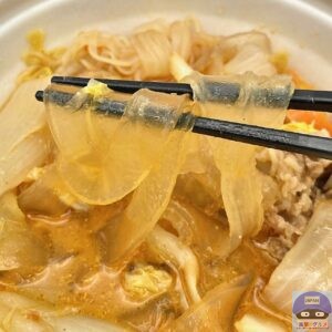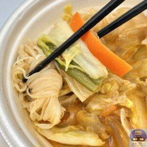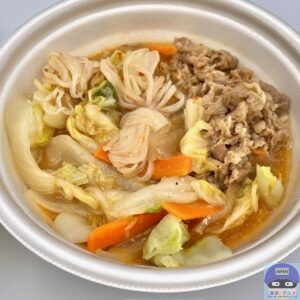 具材は、牛肉、白菜、にんじん、ねぎ、白滝、じゃがいも春雨が入っています。