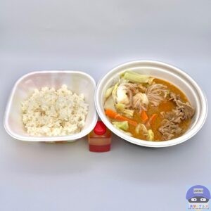 胡麻麻辣湯鍋を電子レンジで温め、牛肉を食べます。