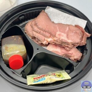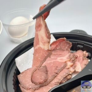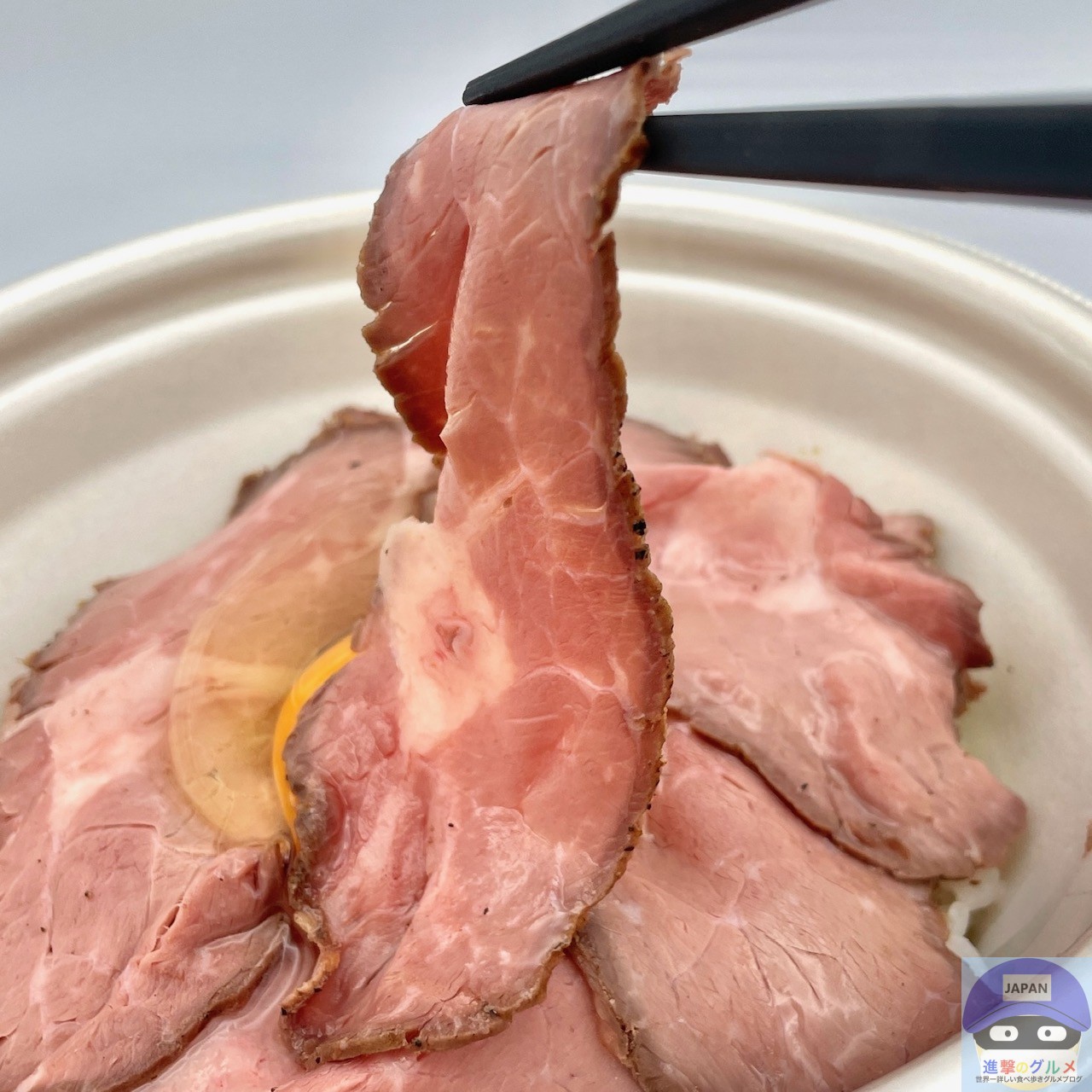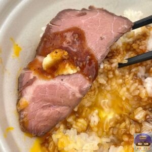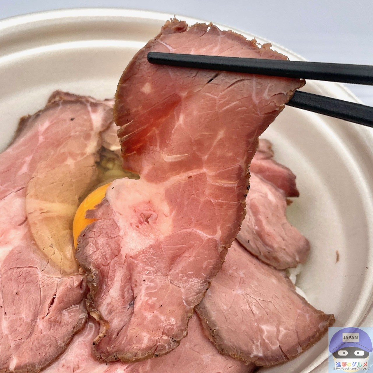 温かいごはんにスライスしたローストビーフを盛りつけ、特製の醤油ダレをかけた商品です。