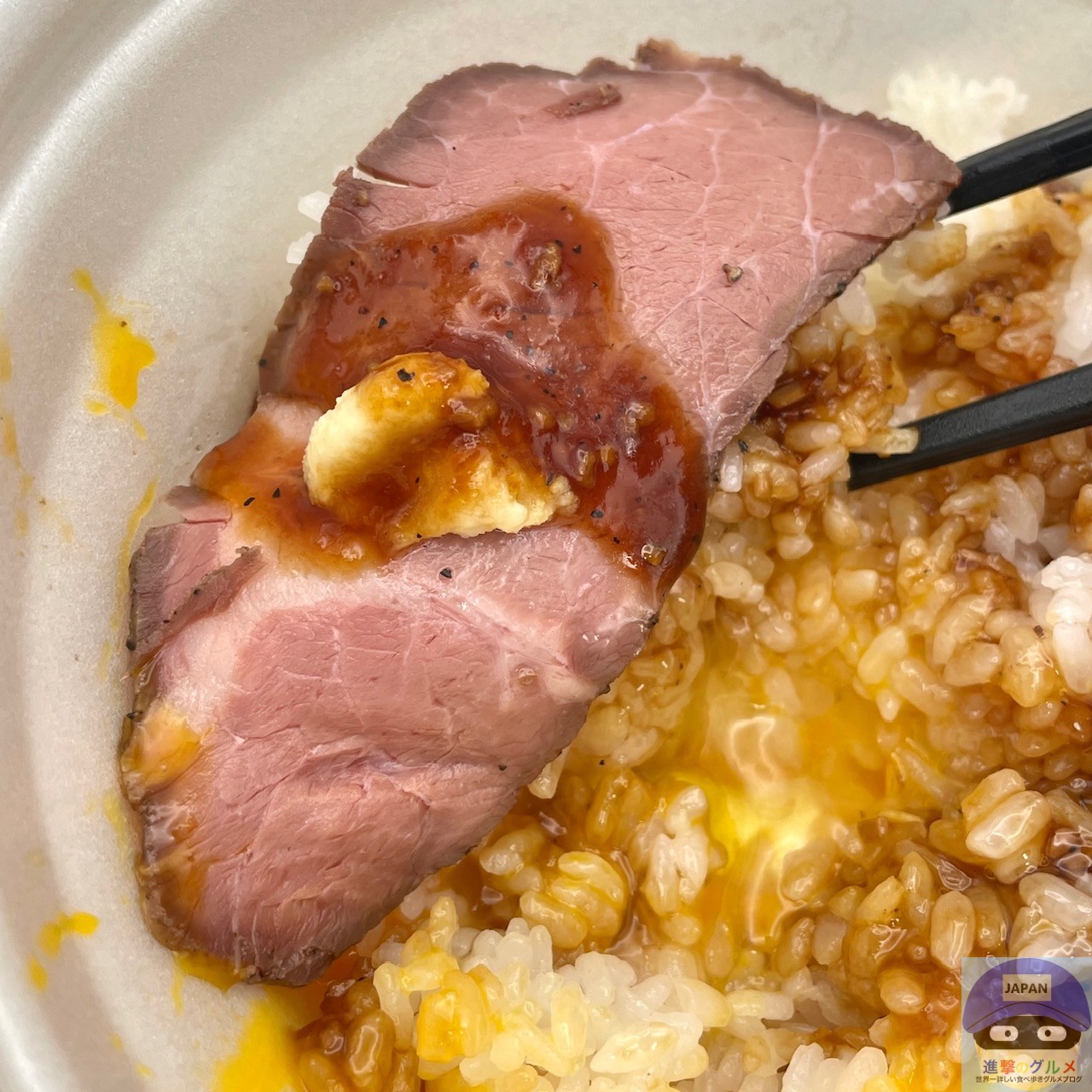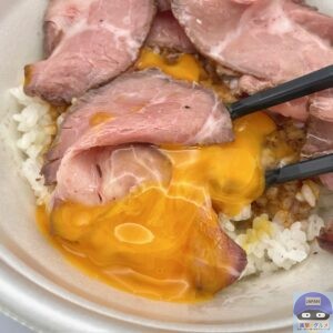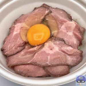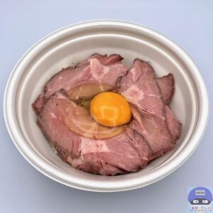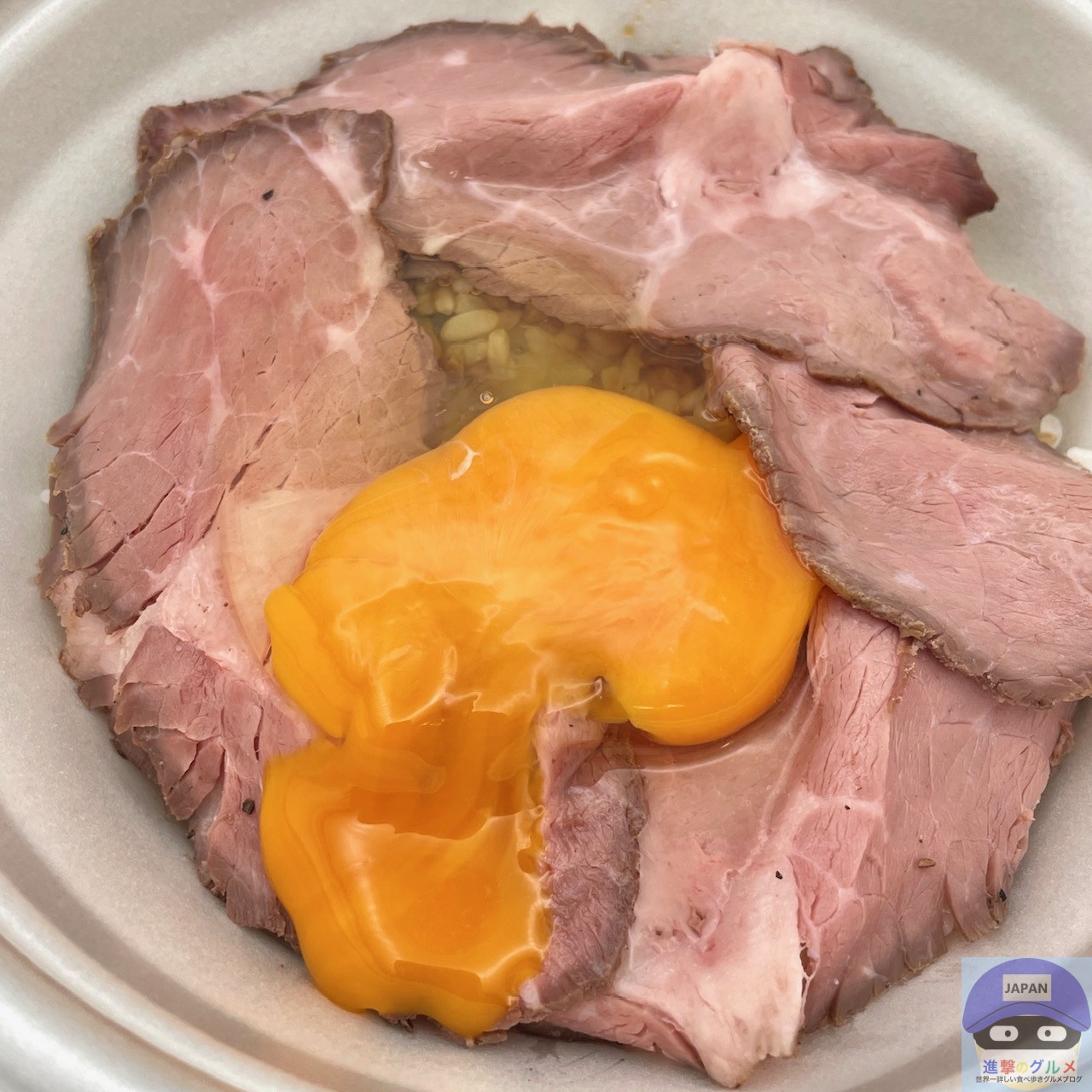 旨みの詰まったローストビーフと、ニンニクが効いた濃厚な醤油ダレ、まろやかなたまごが調和した、至福の味わいを堪能できます。